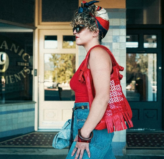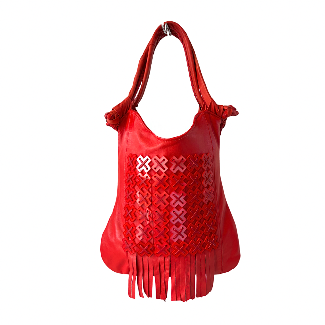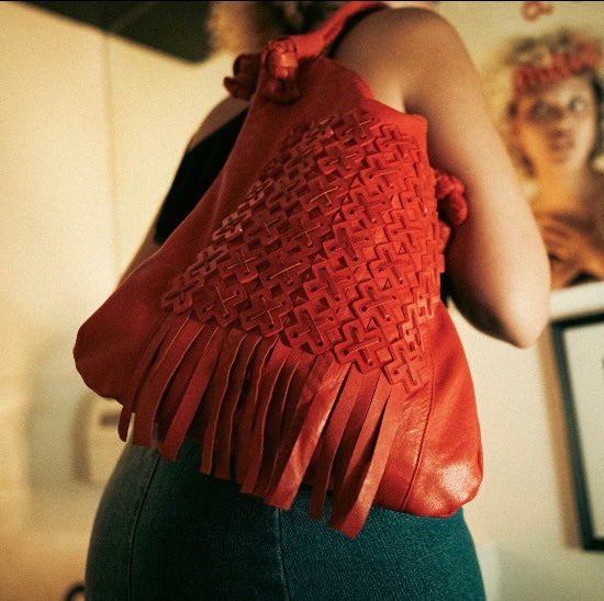 With repetitive monochromatic ‘kisses’ woven onto time-worn upcycled leather, we love The Kiss bag. Designed and created within the limitation of a lasercutting over-run, this statement piece is for the stylish conscious consumer.
